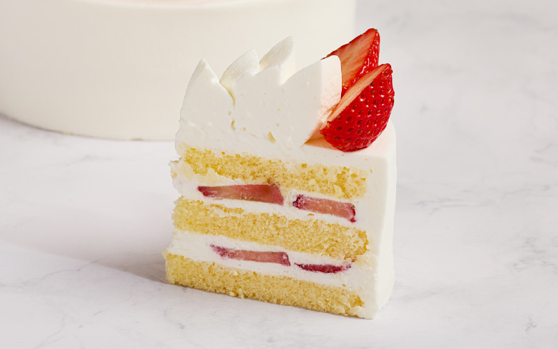 口の中でほろりと崩れる柔らかいスポンジと、コクがありつつ軽い口当たりのクリームが好評の、長年愛される王道のショートケーキです。