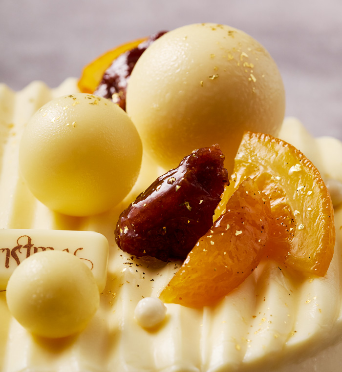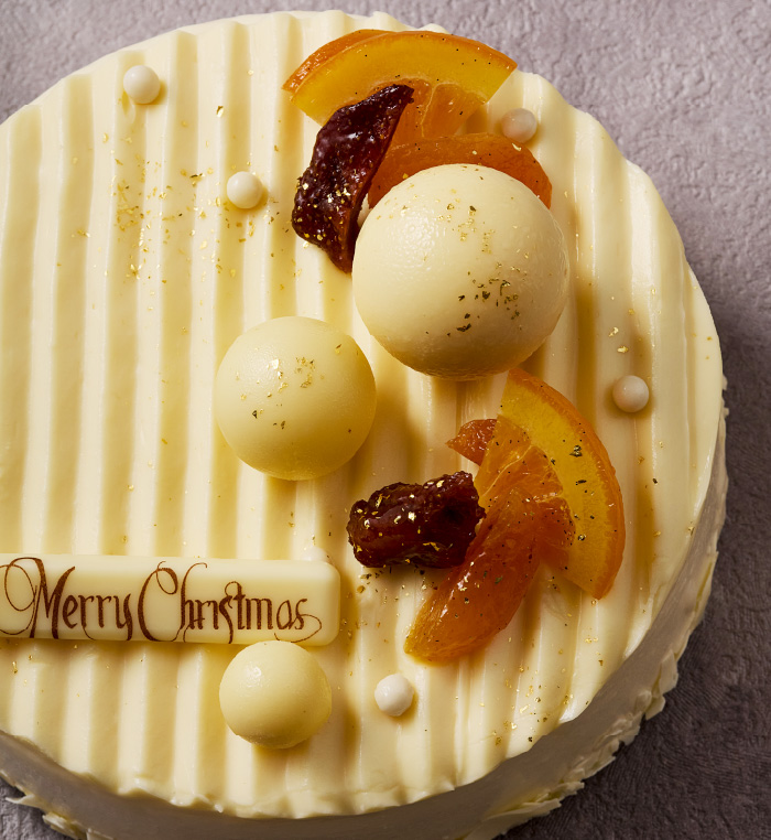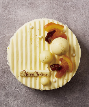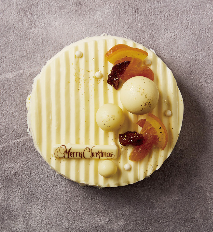 画家アンリ・マティスが手がけたロザリオ礼拝堂に着想を得た白いケーキ。アプリコットやオレンジが鮮やかに彩る優しい光のような逸品。果実のジュレを重ね、トンカ豆香るチーズムースで包んだ聖夜にふさわしい華やかな味わいです。