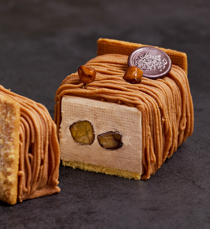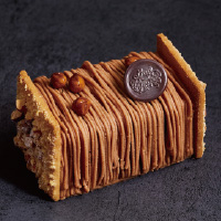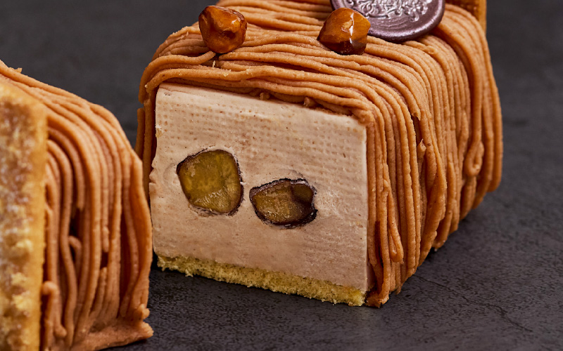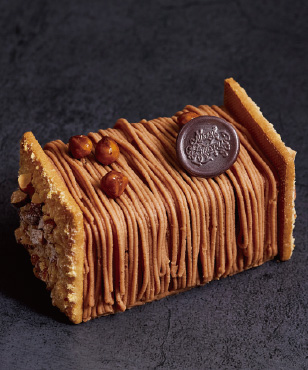 キルシュ香る京王プラザホテル伝統のモンブランをクリスマス仕様にアレンジ。栗入りマロンムースと濃厚なマロンヴェルミセルを重ねた、大人のための上品な味わい。切り分けやすい長方形のモンブランです。