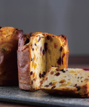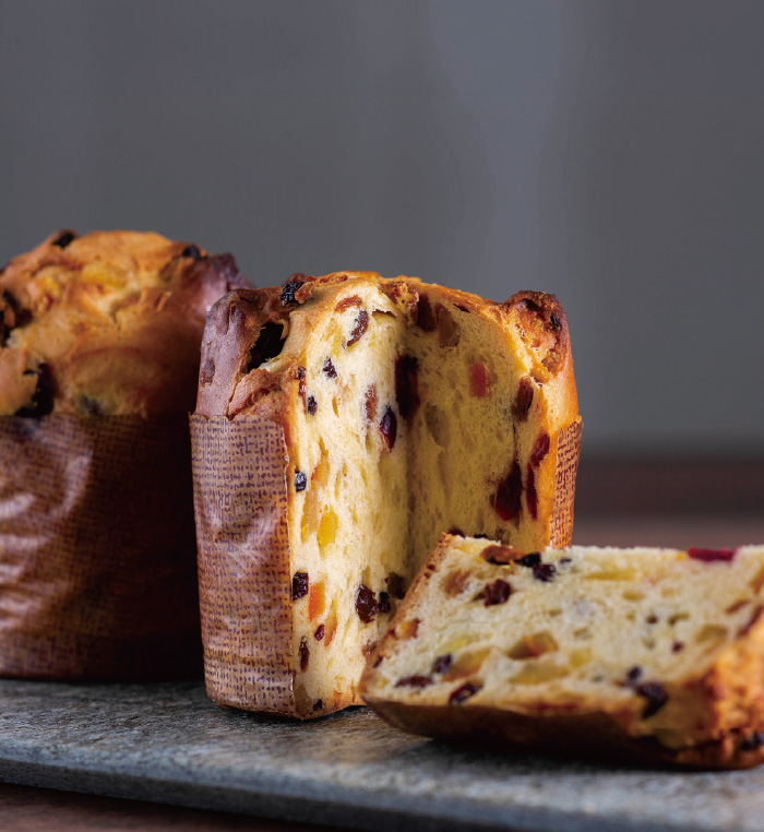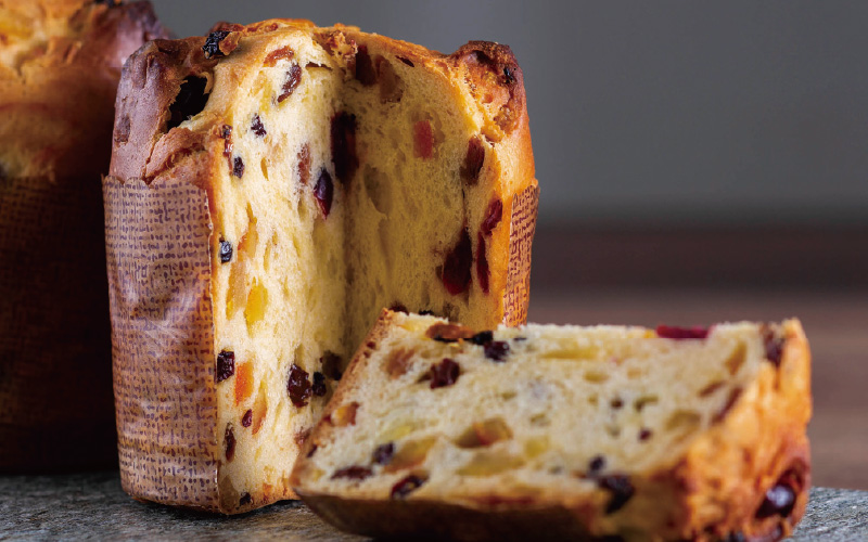 自家製酵母種を使用した風味豊かな生地とドライフルーツの芳醇な香りが魅力のパネトーネ。クリスマス時期の朝食やデザートなど様々なシーンで楽しまれる伝統菓子です。