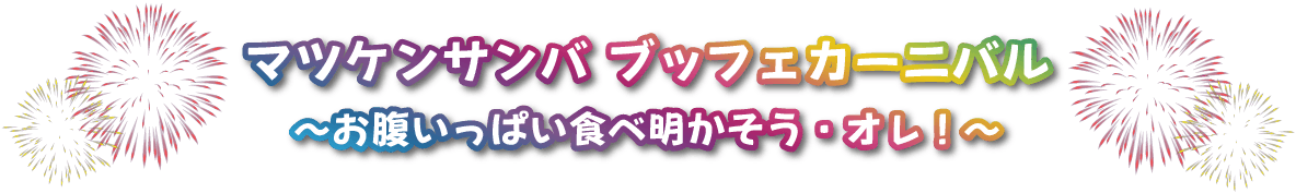 情熱のリズムに乗って、食べて音楽にのって笑っちゃおう! マツケンワールド全開の、ゴージャス&エキゾチックなブッフェがついに開幕! サンバにちなんだブラジルの陽気な風と、マツケンの煌めきが融合した、食の祭典!