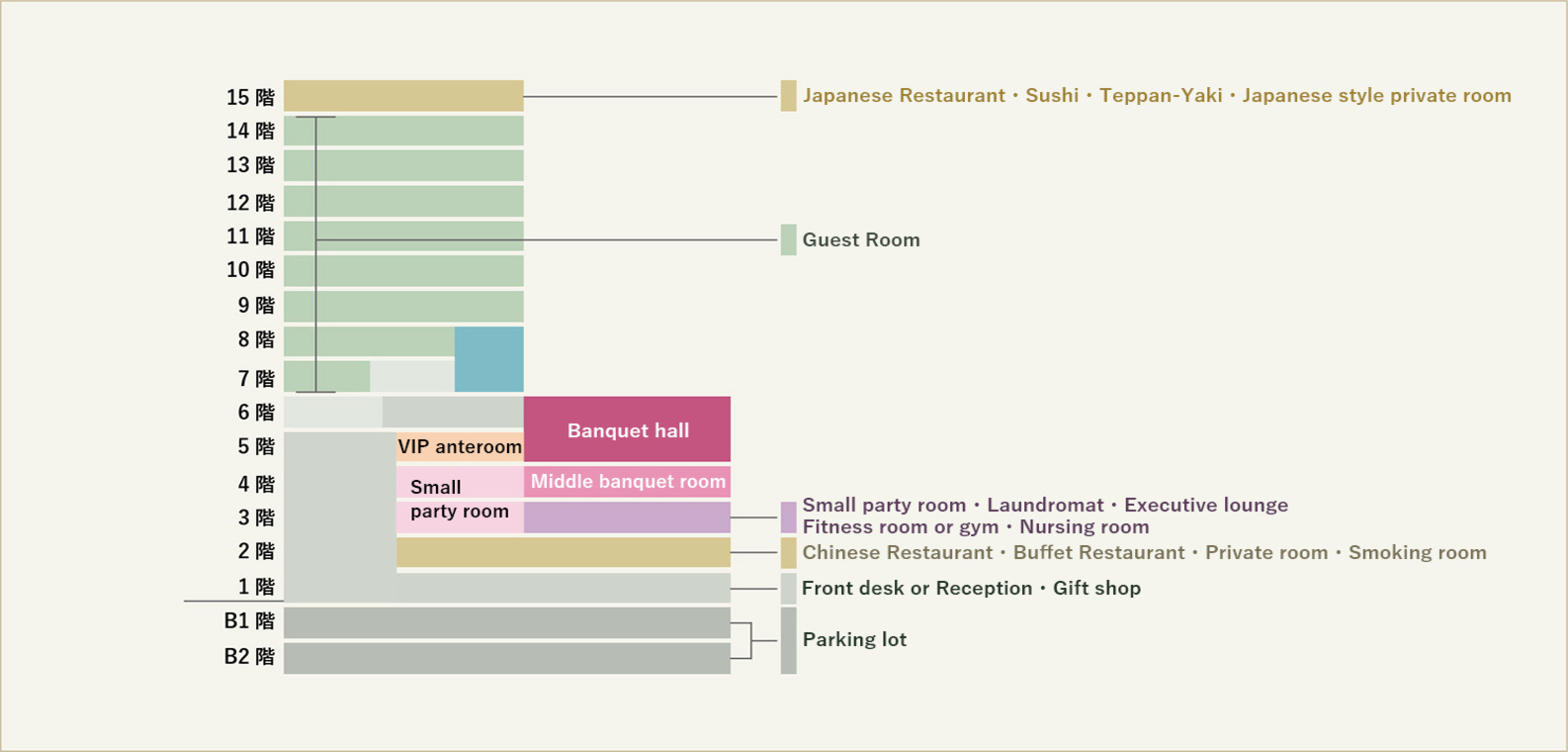 | 4階 | 中型Banquet Room(缘、锦、小木) 小型Banquet Room(葵、夏目、瑞希) |
