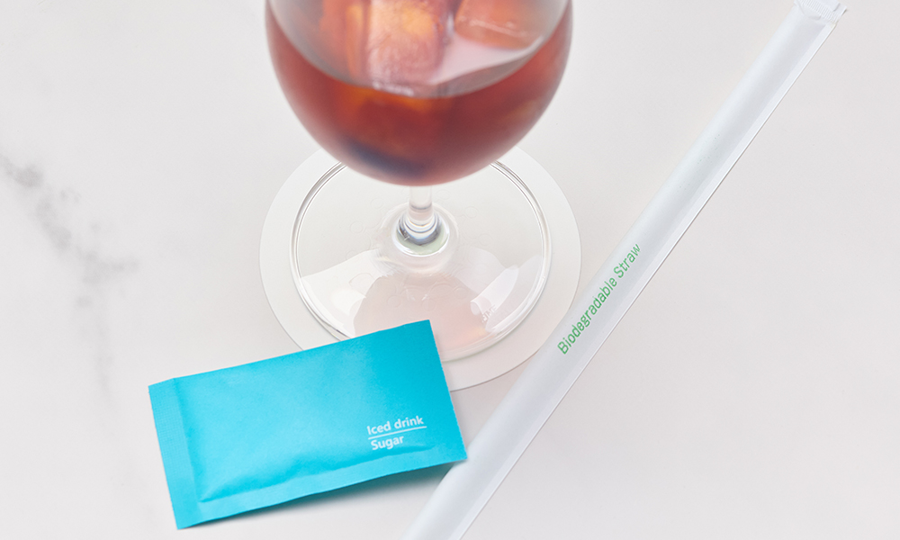地球温暖化や海洋プラスチックごみ等に対する環境保全の取り組みとして、京王プラザホテルチェーンで年間約43万本使用していたプラスチックストローを、2018年より紙製ストローに、さらにお客様の声をもとに使用感も重視し、2022年に環境にやさしい生分解性バイオマスプラスチックストローに移行しました。