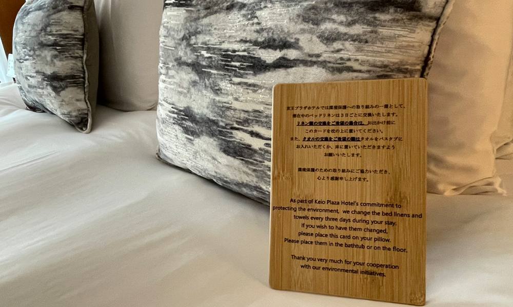 連泊のお客さまでシーツ・タオルの交換が不要の場合は、カードなどにより意思表示していただき、地球環境の負荷低減に貢献しています。