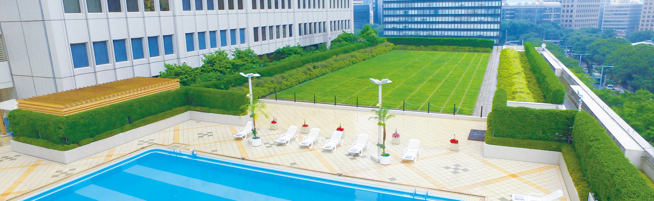 大都市のヒートアイランド現象に効果的な施策として、2008年に本館7階屋上の大規模な緑化を実施しました。屋上緑化によるヒートアイランド抑制効果は、1時間あたり平均14万5千kcalで、夏季の3ヶ月間、1日中8畳用ルームエアコン75台を連続運転した場合にかかる電力分に相当します。心地よく、美しい植栽によって環境に貢献しています。