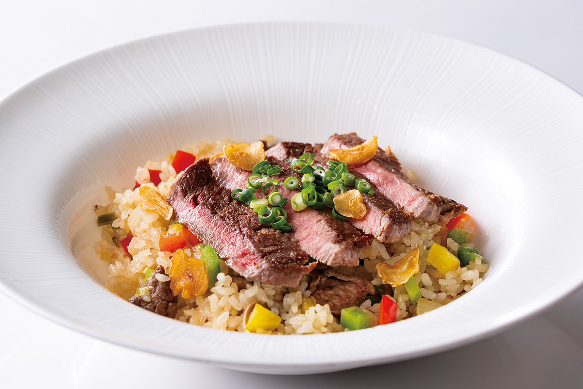 We have revived a dish from Jurin, one of our most popular dishes at the time, featuring juicy beef steak, chopped wasabi, and garlic chips.