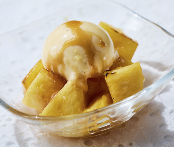 甘みを引き出した温かいパイナップルと