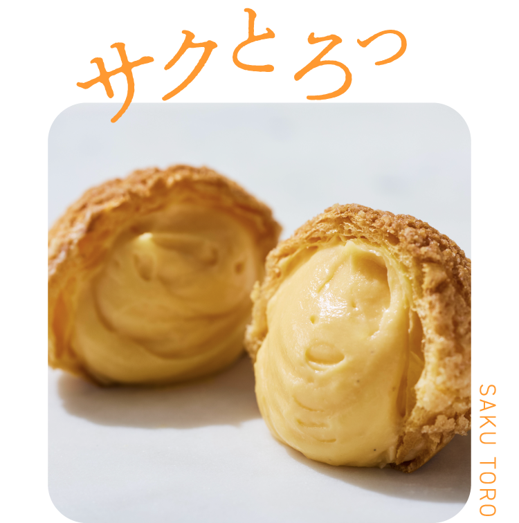 夏の果実のシュークリーム - 自家製のシュー生地に、バニラビーンズたっぷりの