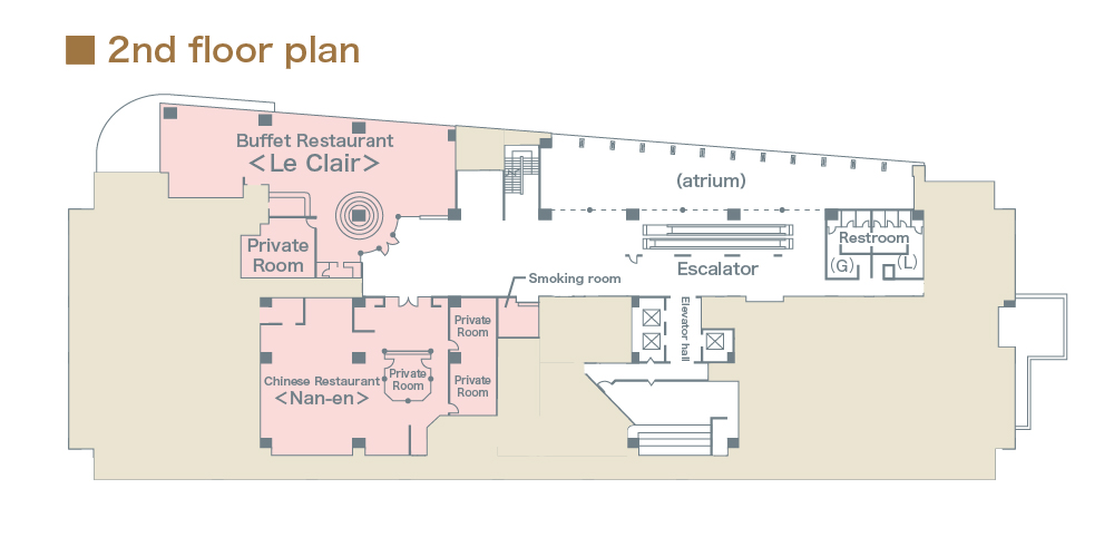 | 3階 | Small Banquet Rooms (Cosmos, Cattleya, Iris, Pure de Coeur) Coin Laundry Executive Lounge Fitness Room Nursing Room |