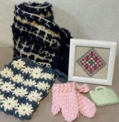 - 予定作品:ふわふわマフラー、お花のバッグ、ハーダンガ―刺しゅう ほか