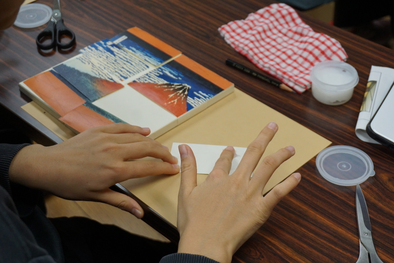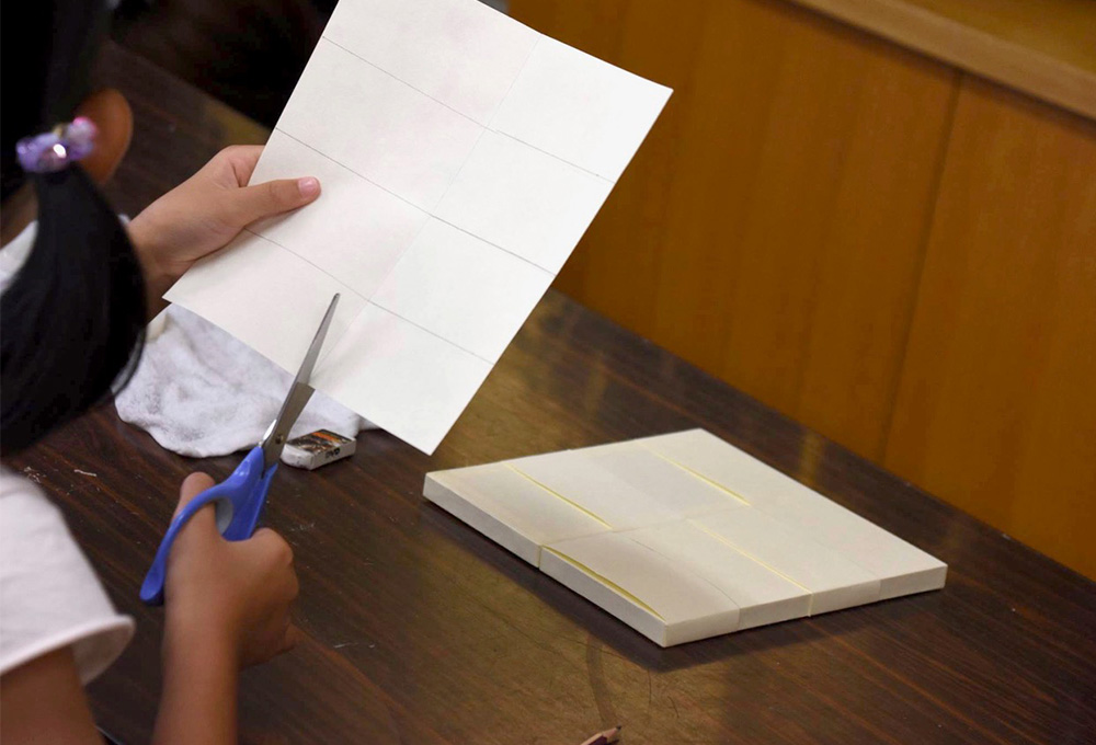 線を測って引き、ハサミで切り、のりで貼るだけのシンプルな工程のため、初めての方でも気軽にご参加いただけます。