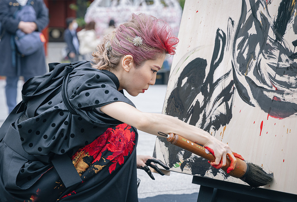 原愛梨氏プロフィール「書道」を「アート」へと昇華させ、国内外で高い評価を受ける書道アーティスト。現在はニューヨークを拠点に、アートの本場で日本文化の書道をジャンルや言語の壁を超えて発信している。2歳で書道を始め、幼少期より数々の書道大会で受賞、2018年からは“文字で絵を書く”独自の表現スタイルを確立。革新的な作品は多くのメディアで紹介され、国内外の著名人や有名企業、 スポーツチームから制作依頼が寄せられている。またアメリカ、欧州、中東など世界中でも展示やライブパフォーマンスを行い、観客を魅了している。Instagramのフォロワーは約30万人を超え、世界に人気を広げている注目のアーティスト