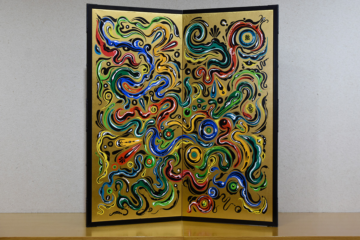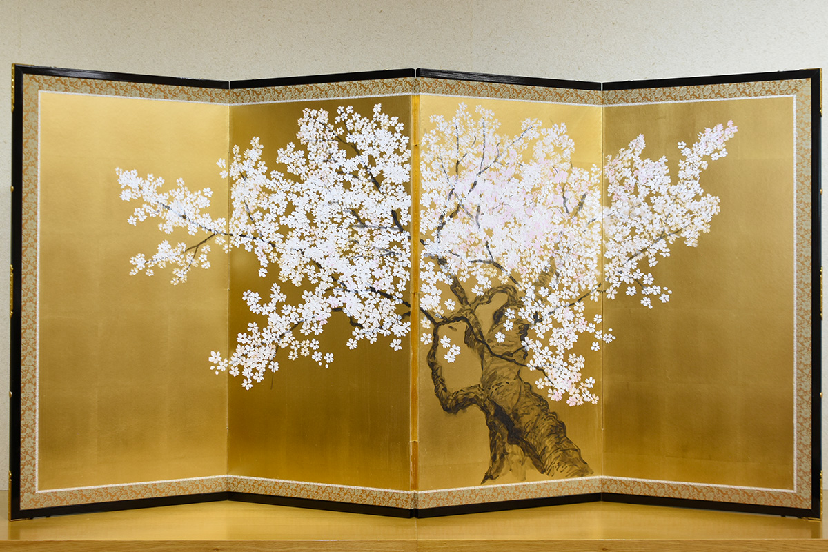 東京都で唯一の屏風専門店 片岡屛風店 をはじめ、日本画家・大和絵師の 伊東正次、写真画家の 丹地保堯、抽象画家の 田中ゆみ、小林章郎らが手がけた作品など、風景・日本画・墨彩といった多彩なジャンルの屏風を約20点展示します。