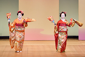 地方による三味線の生演奏に合わせて繰り広げられる芸者衆の優雅な舞踊。