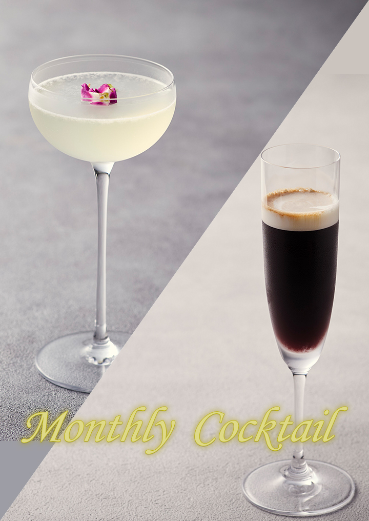 1972年に「今月のお飲物」として始まり、1982年より「マンスリーカクテル」として生み出されてきた創作カクテルの数々。 その中から、バーテンダーが自身の作品をアレンジした珠玉の一杯をご提供いたします。数々の大会で優勝バーテンダーを輩出する京王プラザホテルの伝統をご賞味あれ。