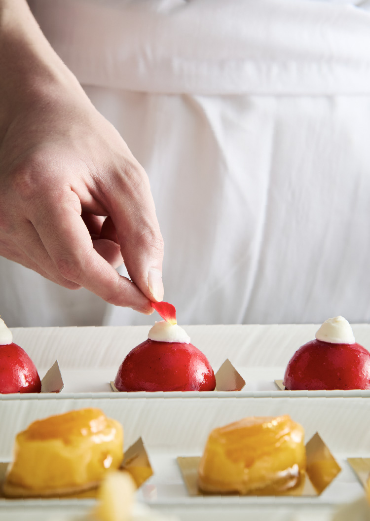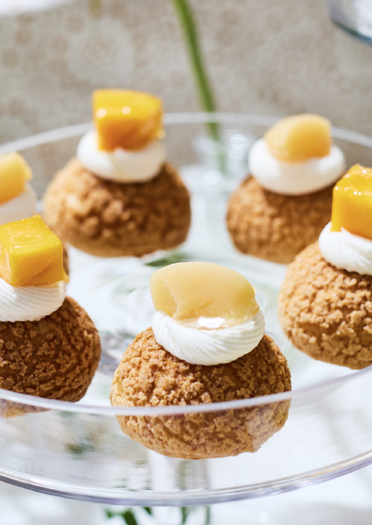 夏の果実のシュークリーム - 自家製のシュー生地に、バニラビーンズたっぷりの