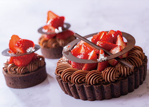 程よい酸味と甘みのバランスの瑞々しい果肉が特徴の村田農園のいちごに、チョコレートカスタードクリームやココア風味のタルト生地をあわせました。
