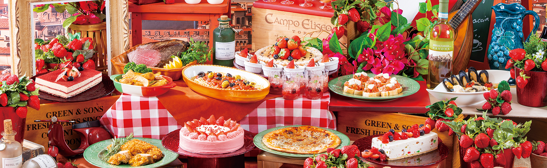 本格イタリアンと旬の苺スイーツを心ゆくまで味わえる贅沢ブッフェ。