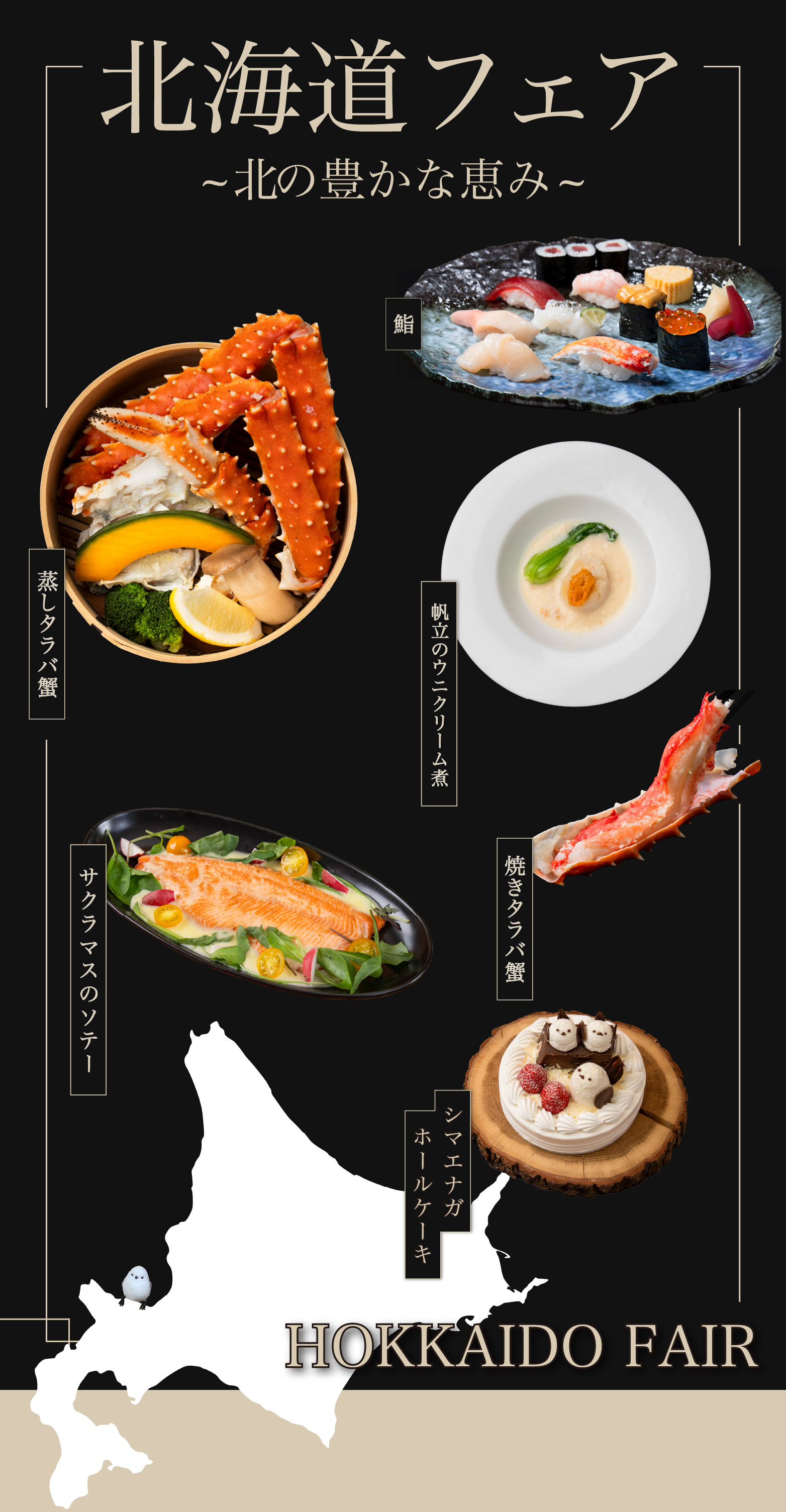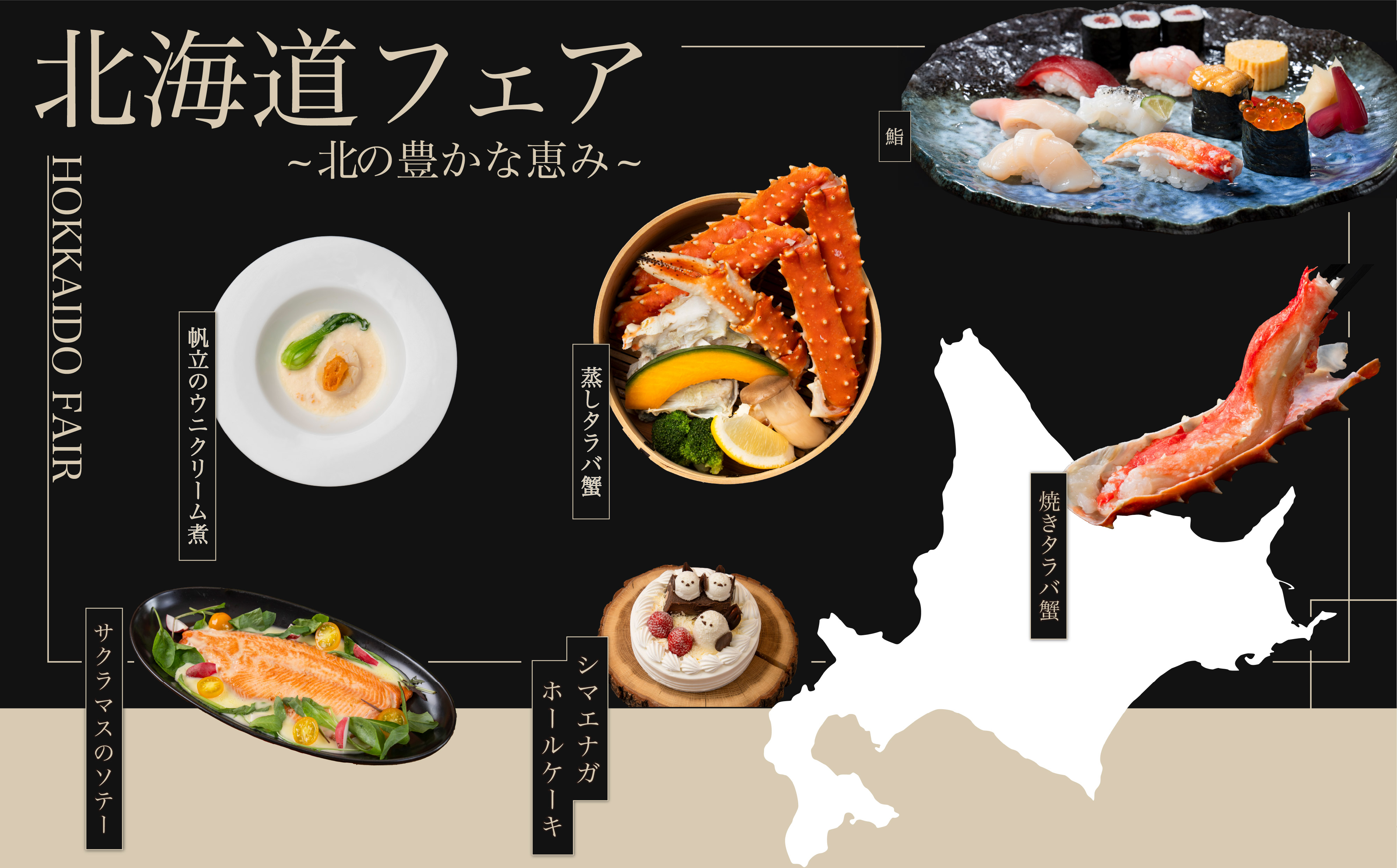 ・帆立・イクラなどの海の幸、北海道産和牛や