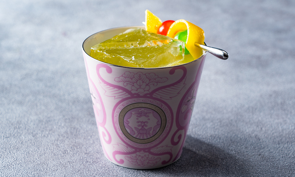 宝石という意味のカクテル「ビジュー」と日本の伝統工芸品である「有田焼」を合わせた爽やかで美しい飲み口の一杯。