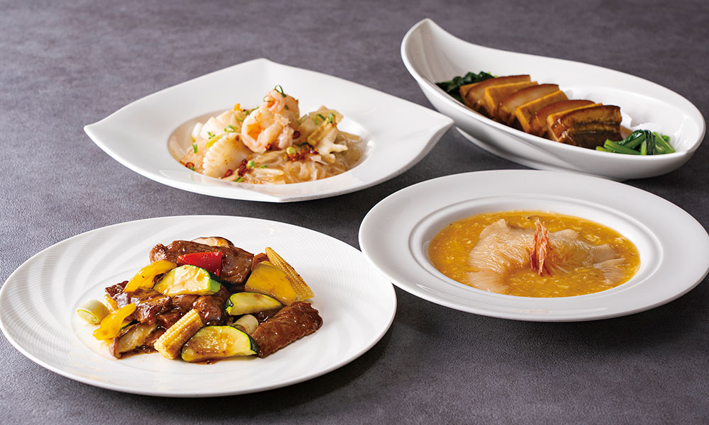 特製あさり入りチャーハン、酢豚、ふかひれ姿煮、豆腐と牛ひき肉の辛子ソース煮(麻婆豆腐)、ザーサイなど。「この味はここだけ」と多くのお客様に絶賛される逸品の数々が伝統を物語ります。