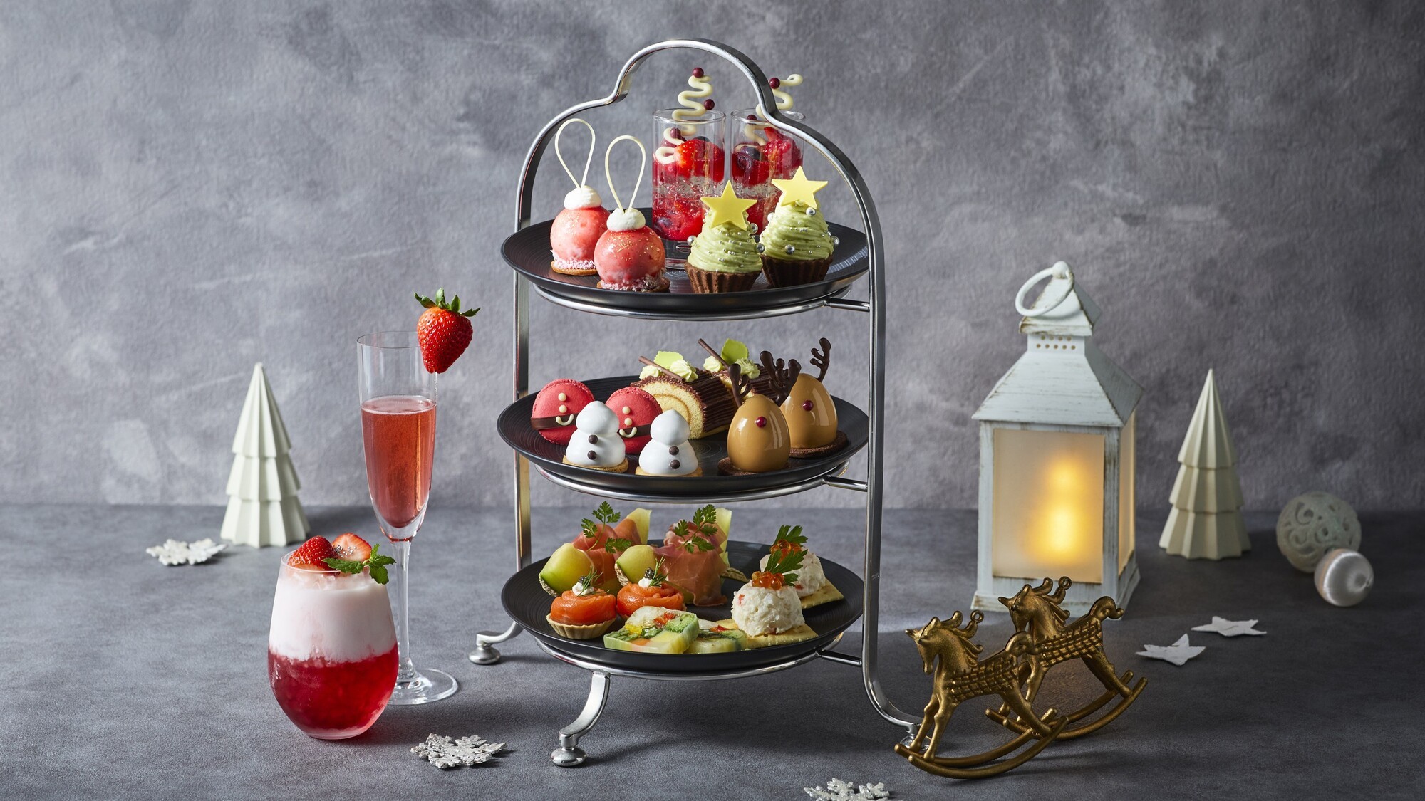 このプランのためにホテルシェフとパティシエが創作したホリデーハイティーセットを