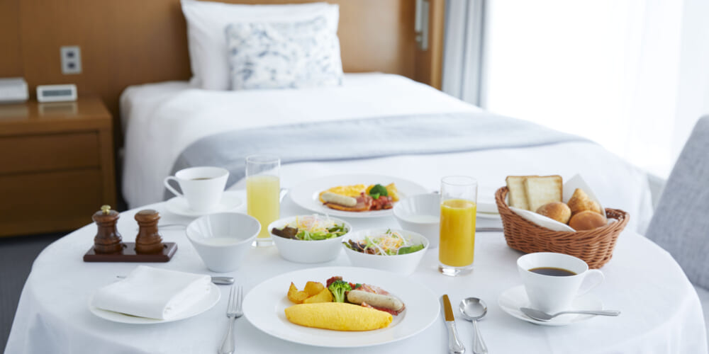 朝食はクラブラウンジでお召し上がり又はルームサービスにてお部屋までお届けに伺いますので、ごゆっくり堪能いただけます。