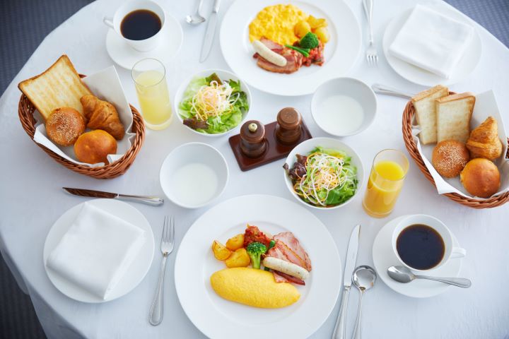 ご朝食付きプランをお選びいただいた場合、朝食は2階のレストラン(樹林・グラスコート)、又は、インルームダイニングからお選びいただけます。