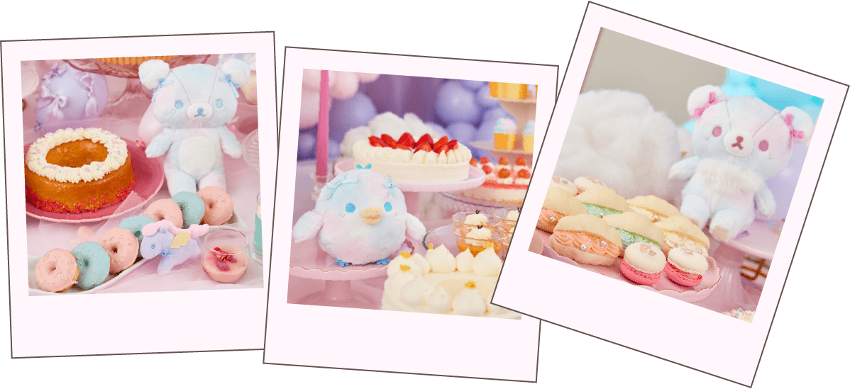 コリラックマたちの可愛いぬいぐるみとともに、癒しのひとときをお過ごしください。